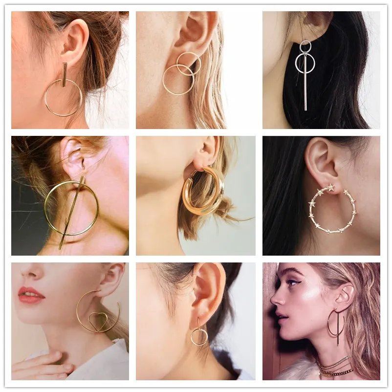 If You want to buy for Earrings, then 2019 New Fashion Simple Gold Color Silver Geometric Big Round Earrings for Women Circle Drop Earrings Statement Brincos Jewelry is possible make you like