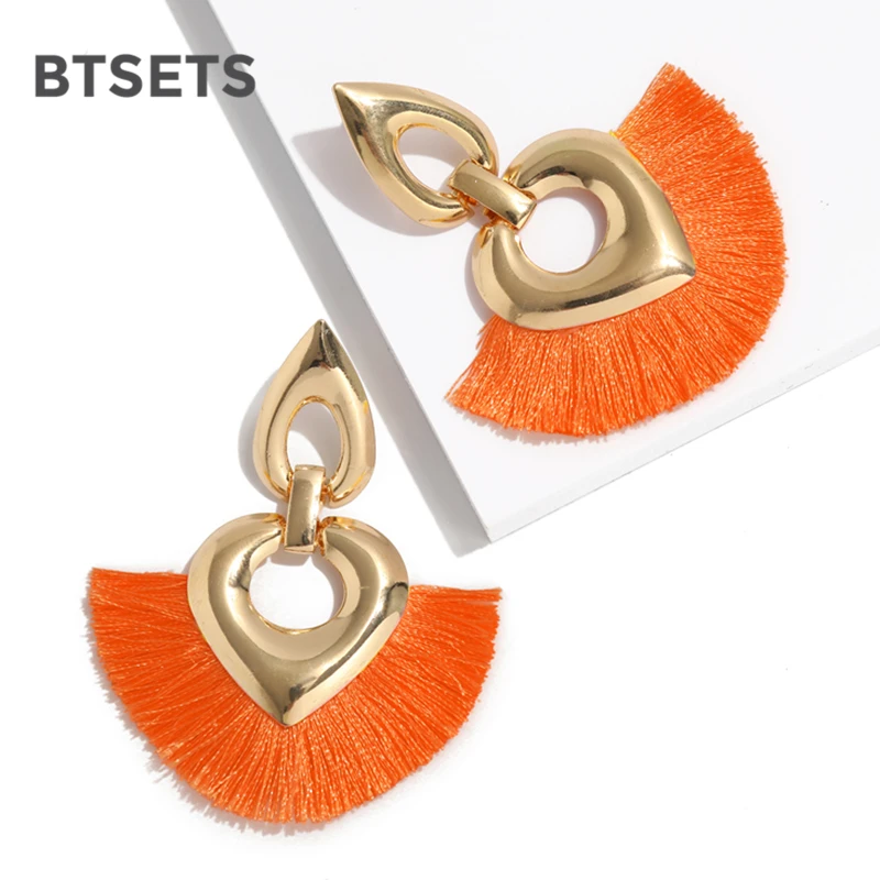 .Gallery for Statement Tassel Earrings for Women Wedding Dangle Drop Earrings Female Orange Boho Heart Fringe Earings Fashion Jewelry