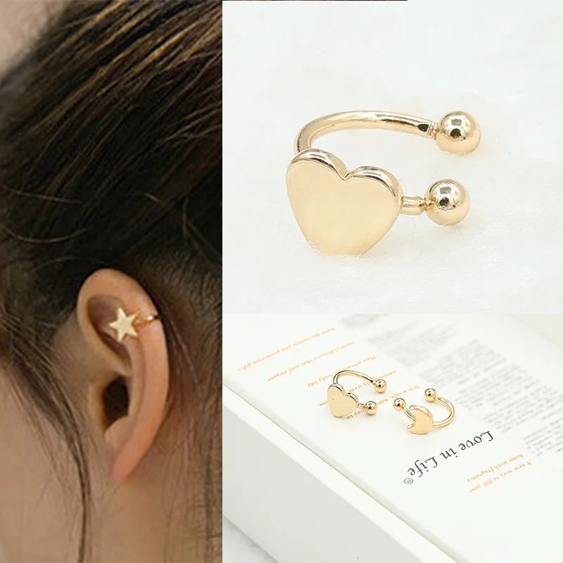 Best Offer for 1PC Fashion Small Gold Silver Copper Moon Clover Star Heart Triangle No Pierced Earclips Earrings for Women Brincos Bijoux R016