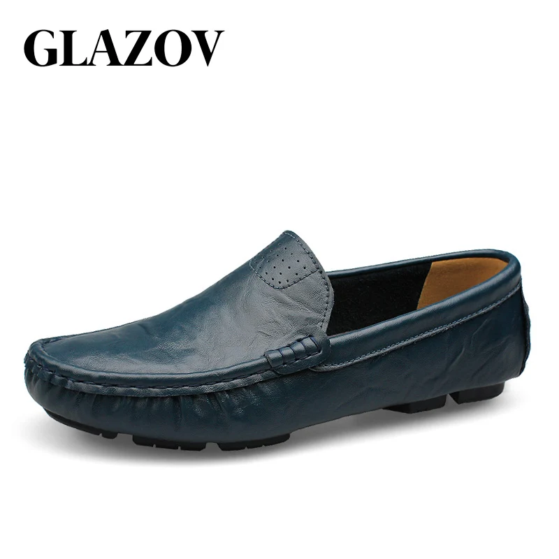 .Gallery of GLAZOV High Quality Genuine Leather Men Shoes Soft Moccasins Loafers Fashion Brand Men Flats Comfy Driving Shoes Big Size 36~50